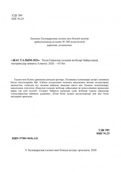 «ЖАС ҒАЛЫМ-2026» Республикалық ғылыми жобалар байқауының материалдар жинағы 9-01-2026, 20:38 Пікір: 0 Мақалалар