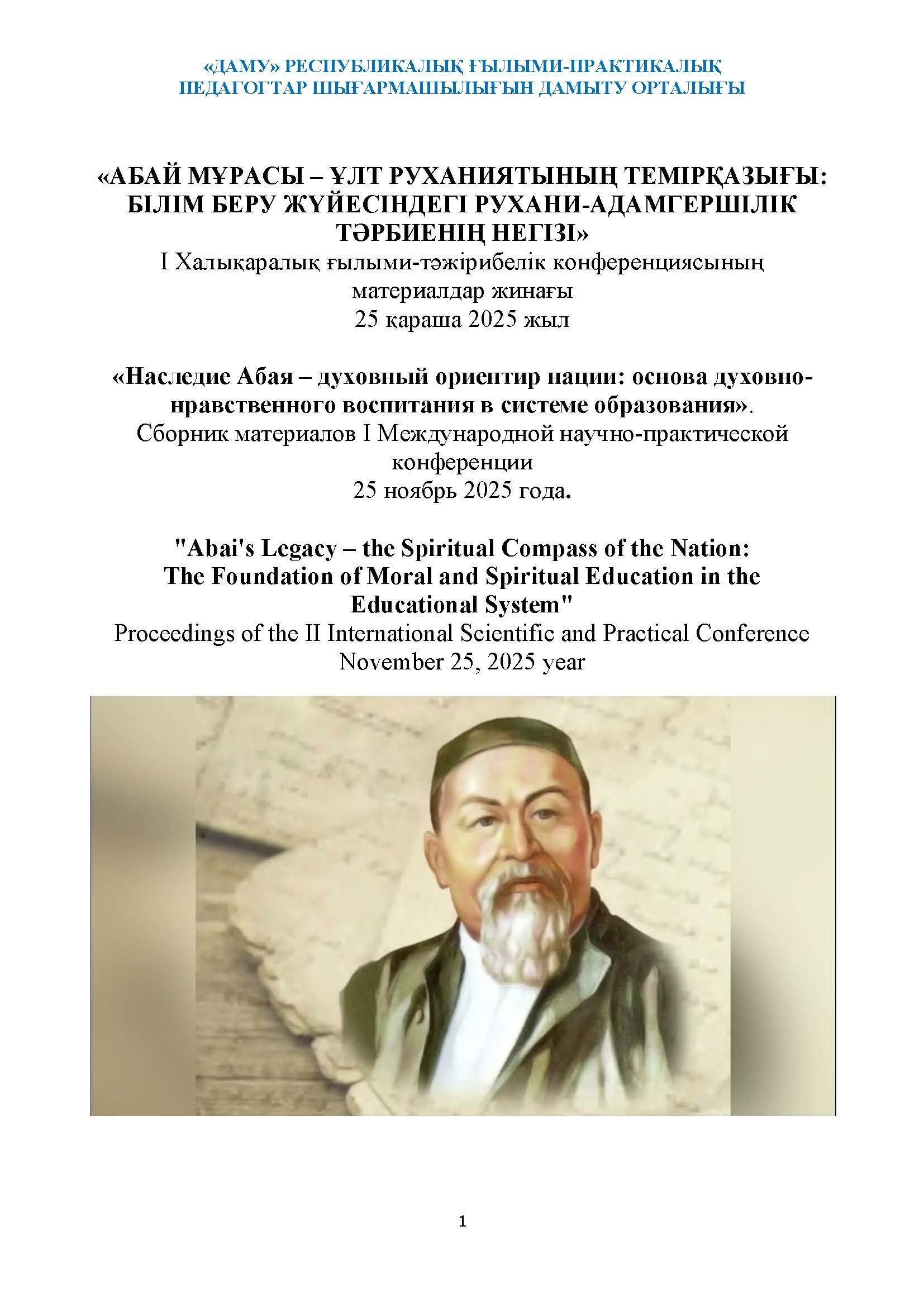 «АБАЙ МҰРАСЫ – ҰЛТ РУХАНИЯТЫНЫҢ ТЕМІРҚАЗЫҒЫ: БІЛІМ БЕРУ ЖҮЙЕСІНДЕГІ РУХАНИ-АДАМГЕРШІЛІК ТӘРБИЕНІҢ НЕГІЗІ» 9-01-2026, 20:47 Пікір: 0 Мақалалар