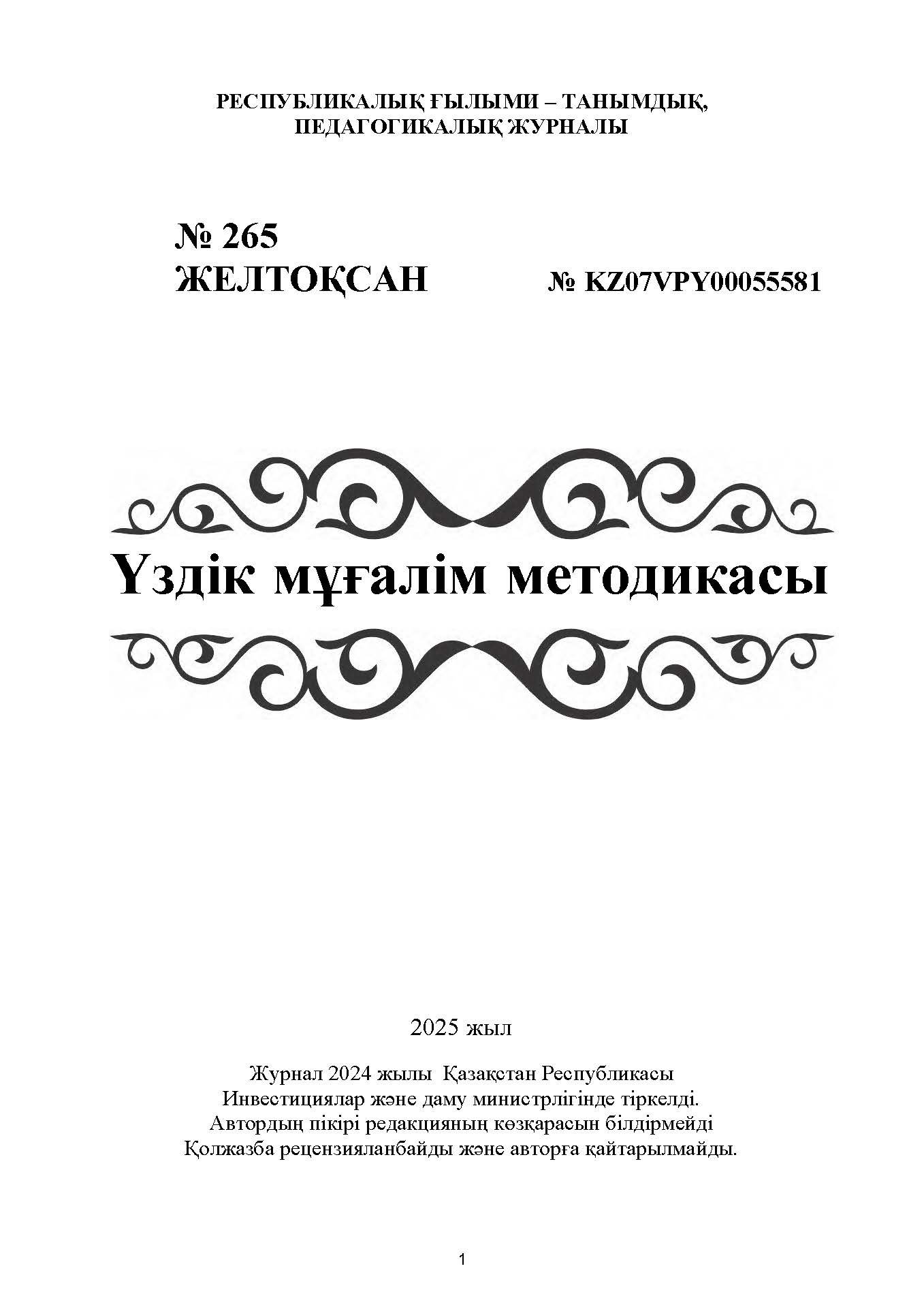Үздік мұғалім методикасы № 265 ЖЕЛТОҚСАН