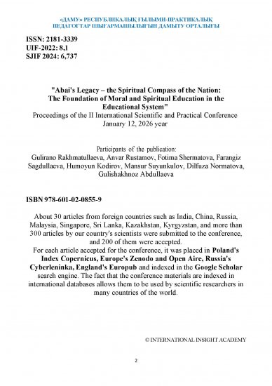 «АБАЙ МҰРАСЫ – ҰЛТ РУХАНИЯТЫНЫҢ ТЕМІРҚАЗЫҒЫ: БІЛІМ БЕРУ ЖҮЙЕСІНДЕГІ РУХАНИ-АДАМГЕРШІЛІК ТӘРБИЕНІҢ НЕГІЗІ» Кеше, 20:22 Пікір: 0 Мақалалар