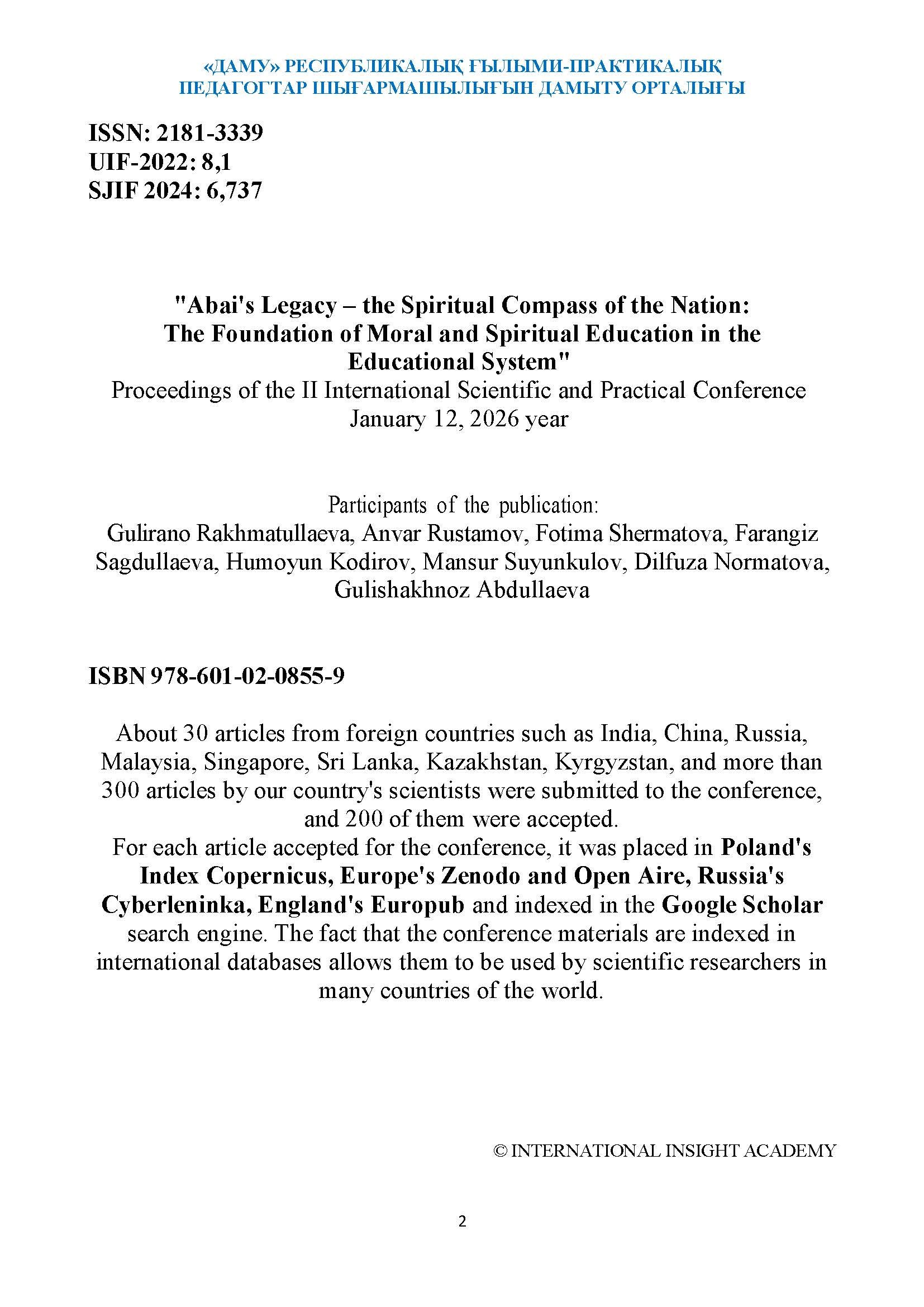 «АБАЙ МҰРАСЫ – ҰЛТ РУХАНИЯТЫНЫҢ ТЕМІРҚАЗЫҒЫ: БІЛІМ БЕРУ ЖҮЙЕСІНДЕГІ РУХАНИ-АДАМГЕРШІЛІК ТӘРБИЕНІҢ НЕГІЗІ» Кеше, 17:19 Пікір: 0 Мақалалар