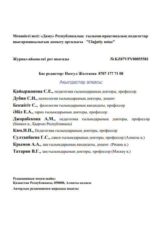 ПЕДАГОГИКАЛЫҚ ЖУРНАЛДАР