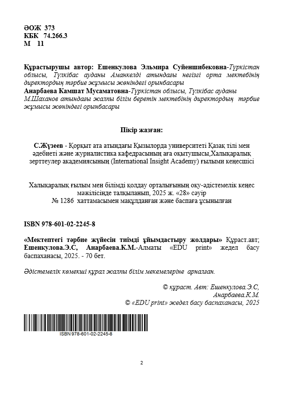 Ешенкулова Эльмира Суйеншибековна Анарбаева Камшат Мусаматовна 20-05-2025, 14:39 Пікір: 0 Үздік авторлық жұмыстар