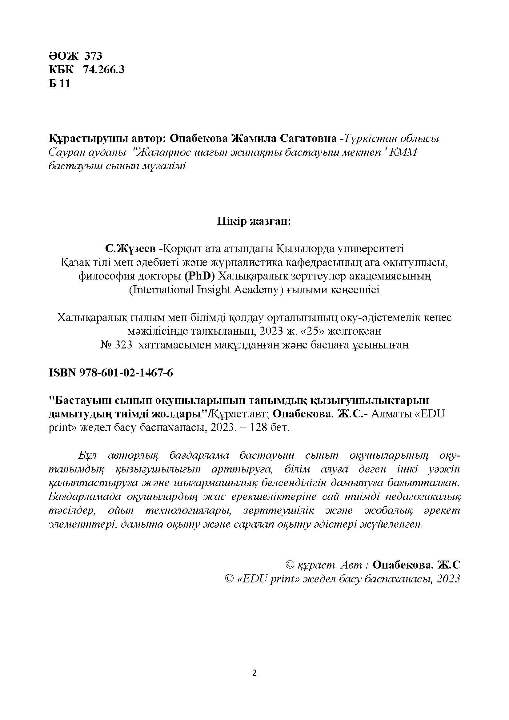 » Опабекова Жамила Сагатовна