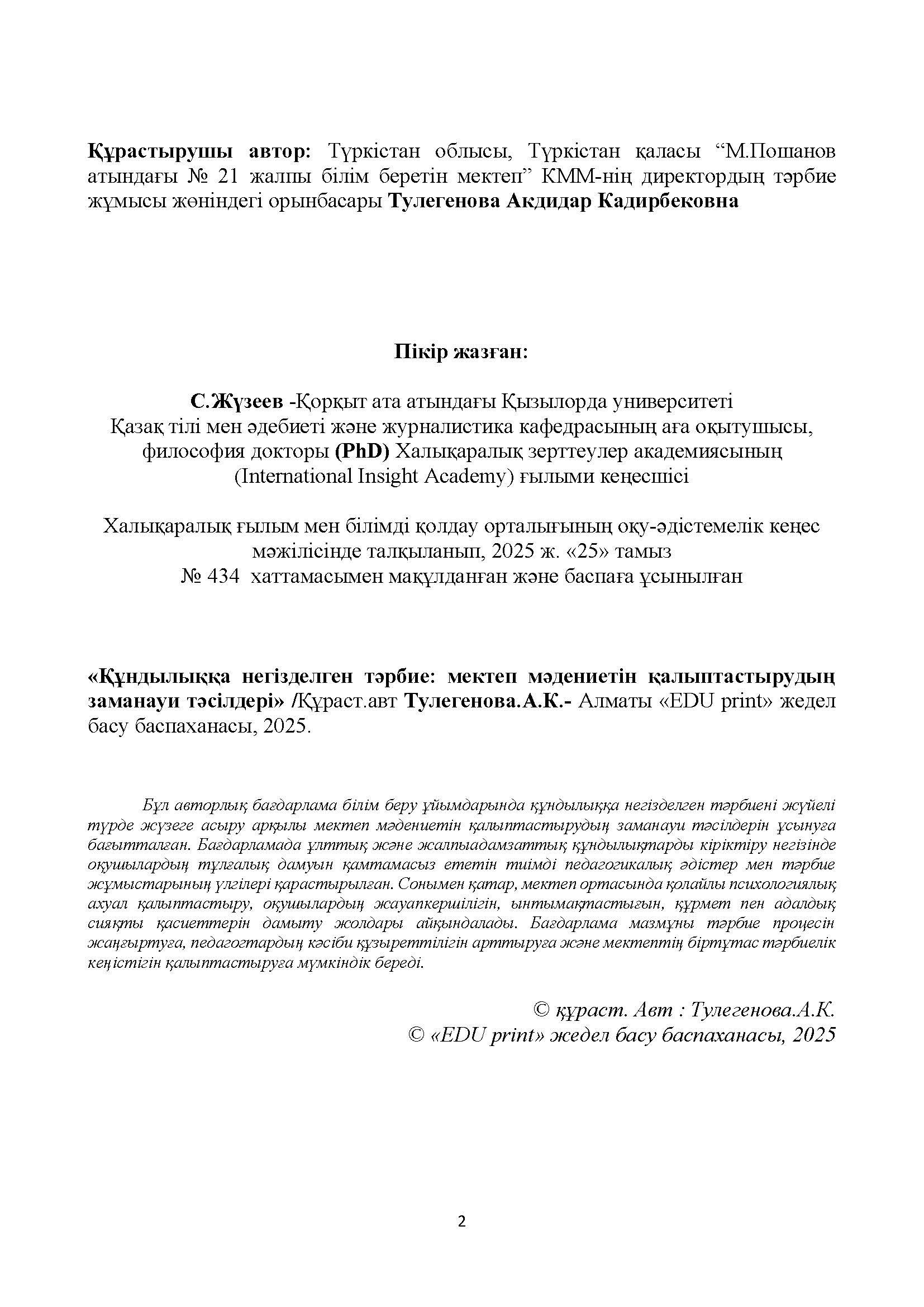 » Тулегенова Акдидар Кадирбековна