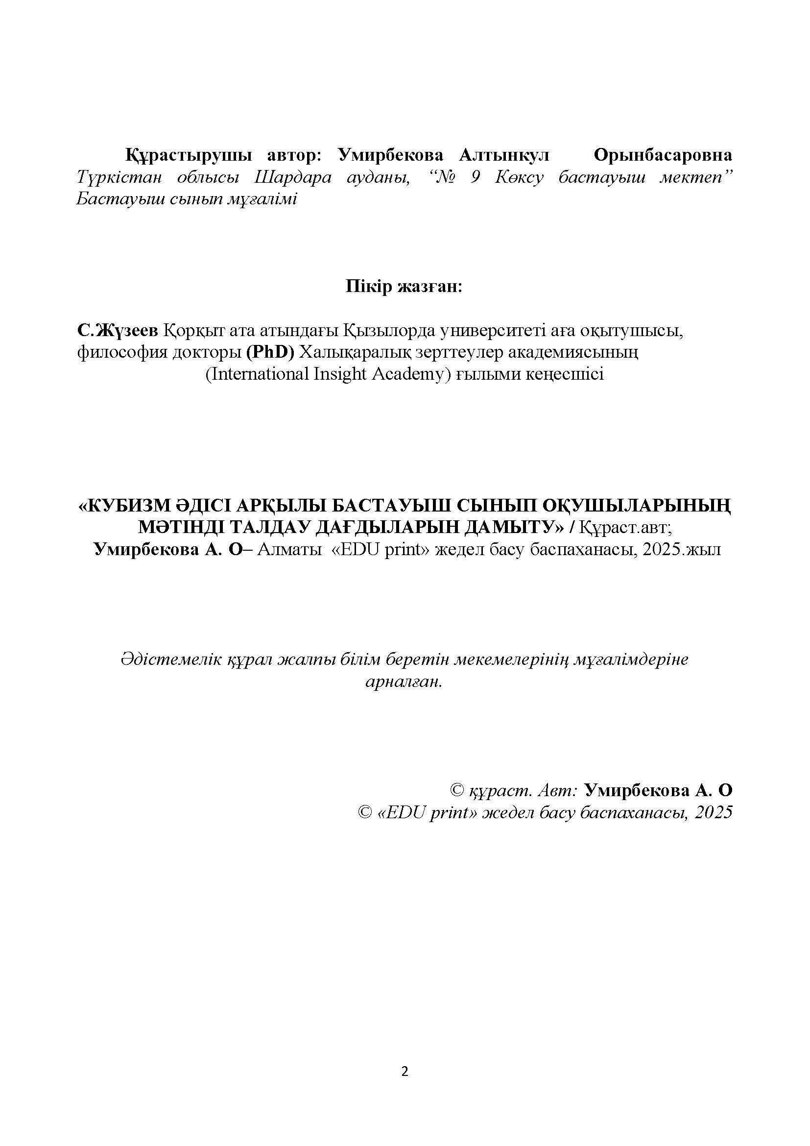 » Умирбекова Алтынкул