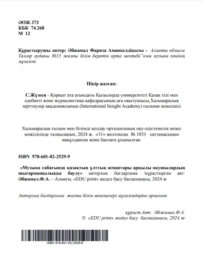 Әбжамал Фариза Аманкелдіқызы "Музыка сабағында қазақтың ұлттық аспаптары арқылы оқушыларды шығармашылыққа баулу" (Авторлық бағдарлама)
