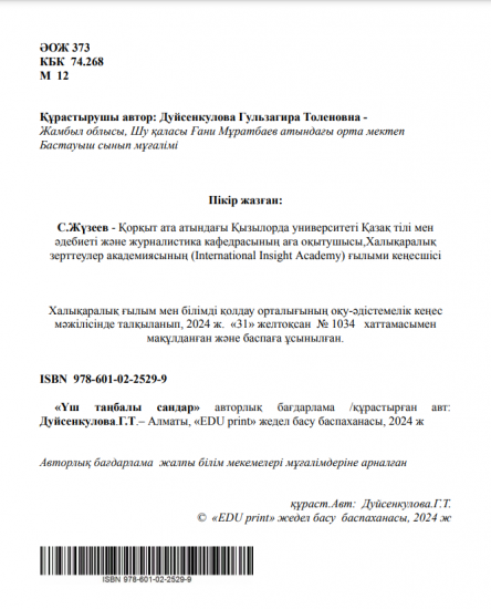 Дуйсенкулова Гульзагира Толеновна "Үш таңбалы сандар" (Авторлық бағдарлама) 11-01-2025, 11:19 Пікір: 0 Үздік авторлық жұмыстар