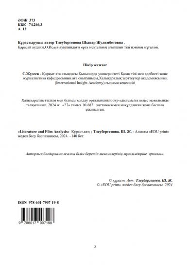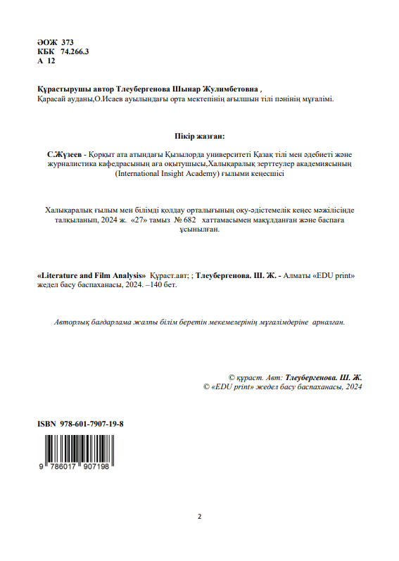 Тлеубергенова Шынар Жулимбетовна Literature and Film Analysis Авторлық бағдарлама 17-01-2025, 10:31 Пікір: 0 Үздік авторлық жұмыстар