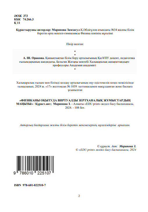 Марипова Замзагул ФИЗИКАНЫ ОҚЫТУДА ВИРТУАЛДЫ ЗЕРТХАНАЛЫҚ ЖҰМЫСТАРДЫҢ МАҢЫЗЫ Авторлық бағдарлама 12-02-2025, 17:26 Пікір: 0 Үздік авторлық жұмыстар