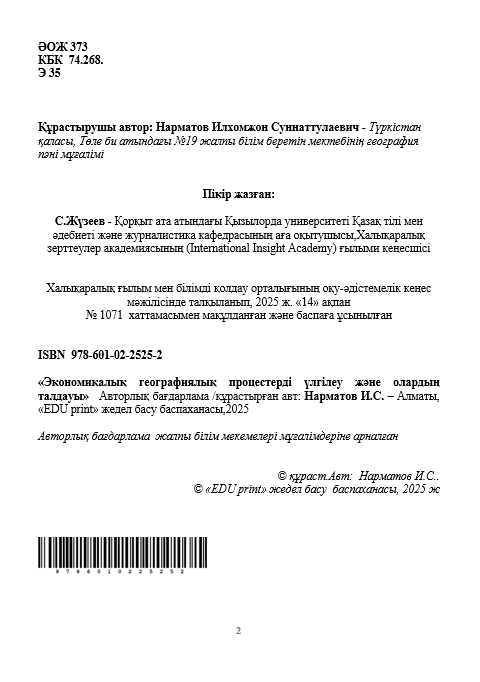 Нарматов Илхомжон Суннаттулаевич Экономикалық географиялық процестерді үлгілеу және олардың талдауы Авторлық бағдарлама