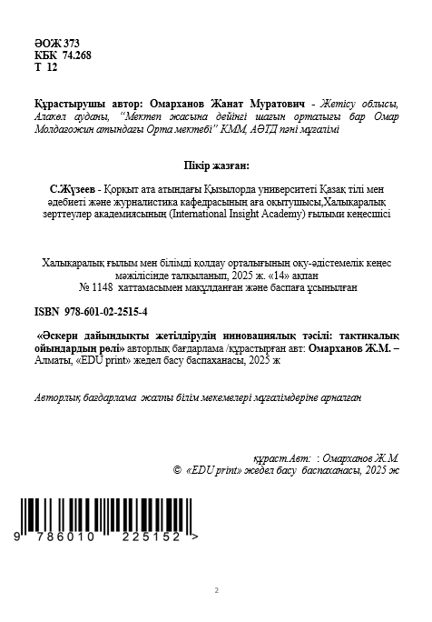 Омарханов Жанат Муратович " Әскери дайындықты жетілдірудің инновациялық тәсілі: тактикалық ойындардың рөлі " (Авторлық бағдарлама)