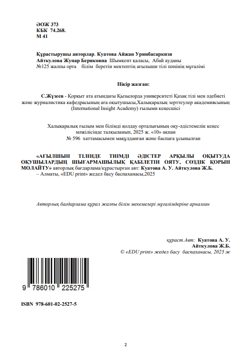 Куатова Айжан Уринбасаркизи Айткулова Жупар Бериковна 17-03-2025, 14:03 Пікір: 0 Үздік авторлық жұмыстар